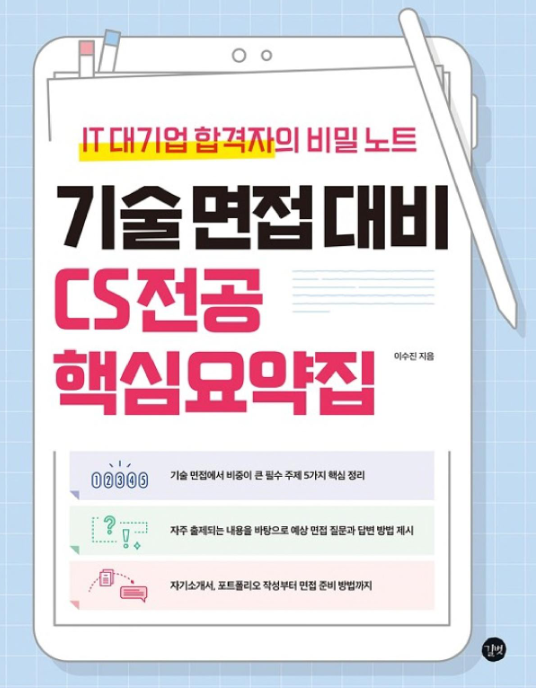 최근 기술면접 주제 서적인 '면접을 위한 CS 전공지식노트'와 '기술 면접 대비 CS전공 핵심요약집' 두 권을 읽었다.(신기하게 두 권 모두 24,000원으로 가격이 형성되어 있었는데 어떤 트랜드일까..?)개인적으로는 '핵심 요약집'이 더 읽기 편했고, 나처럼 면접 경험이 적은 사람에게는 이 책을 더 추천하고 싶다는 생각이 들었다. 그래서 이 책의 내용을 바탕으로 세 가지 게시글을 작성하기도 했다. 두 책 모두 면접 대비 분야별 예상 질문 파트를 제공하는데, 이 부분이 특히 '핵심 요약집'에서 마음에 들었다. 물론 '전공지식 노트'를 비추천하는 것은 아니다. '핵심 요약집'보다 더 자세하고 다양한 내용이 들어 있기 때문이다. 주 전공이 컴퓨터공학이 아니어서 그런지, 이 점 때문에 '핵심 요약집'이 더 읽..