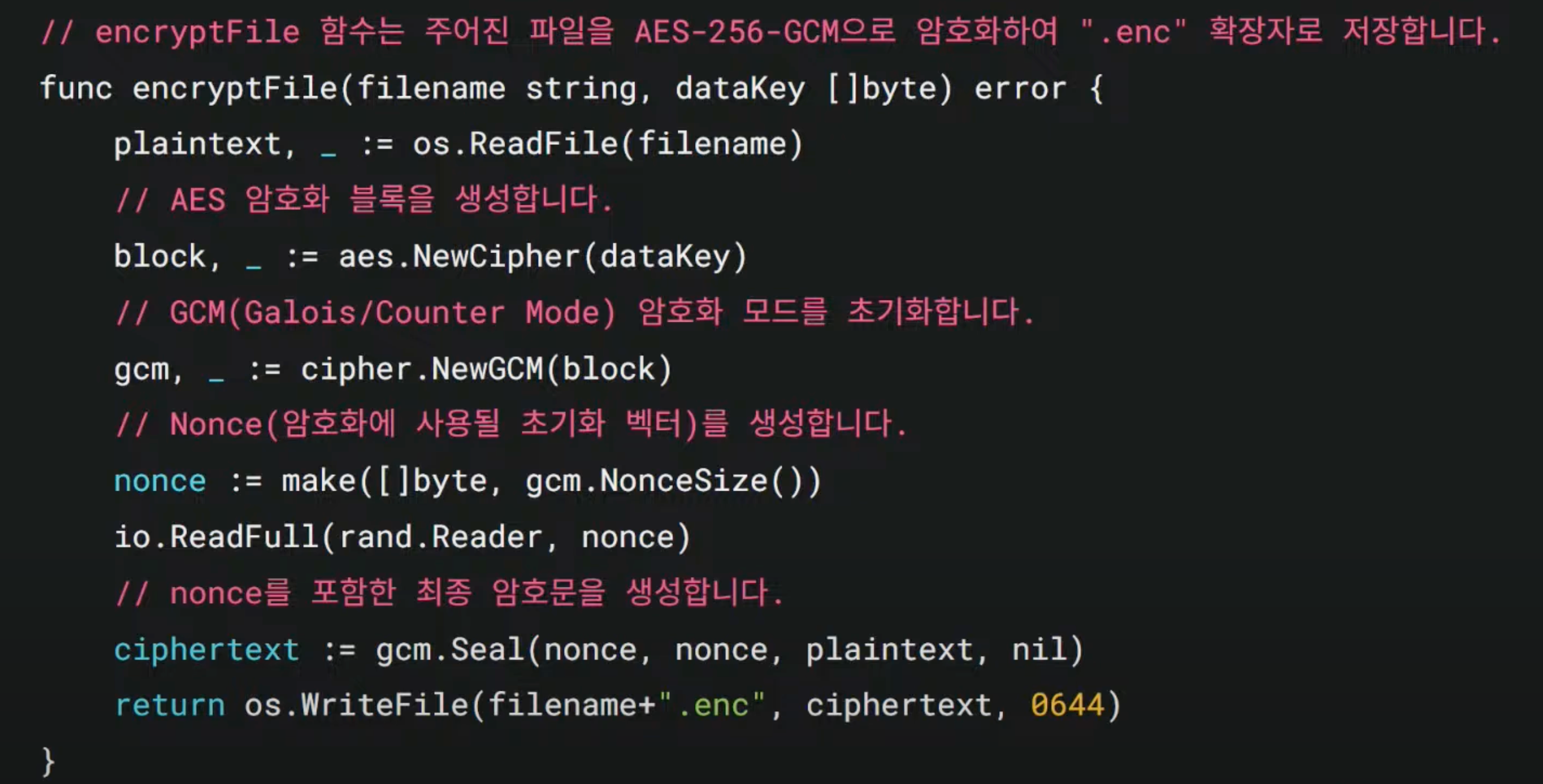 • 클라이언트에서 데이터키를 복호화해 바이너리 복호화