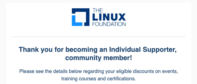- 매년 하나의 Linux Foundation 이벤트 등록비 30% 할인 .