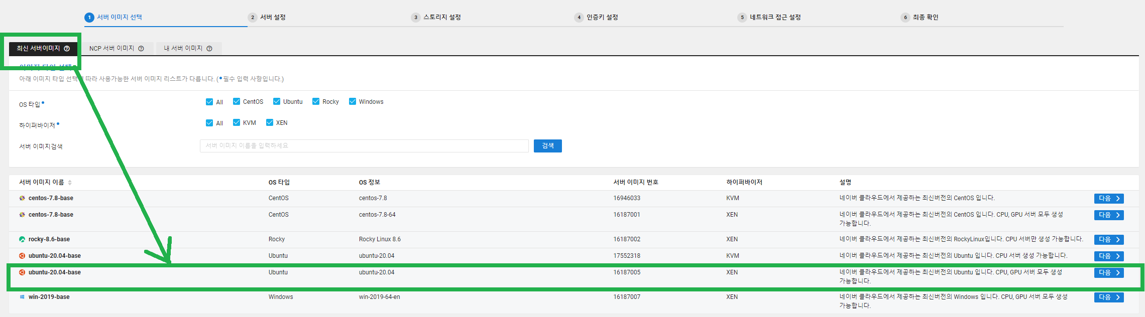 작성일 기준 최신 버전인 ubuntu-20.04-base 이미지를 사용한다.