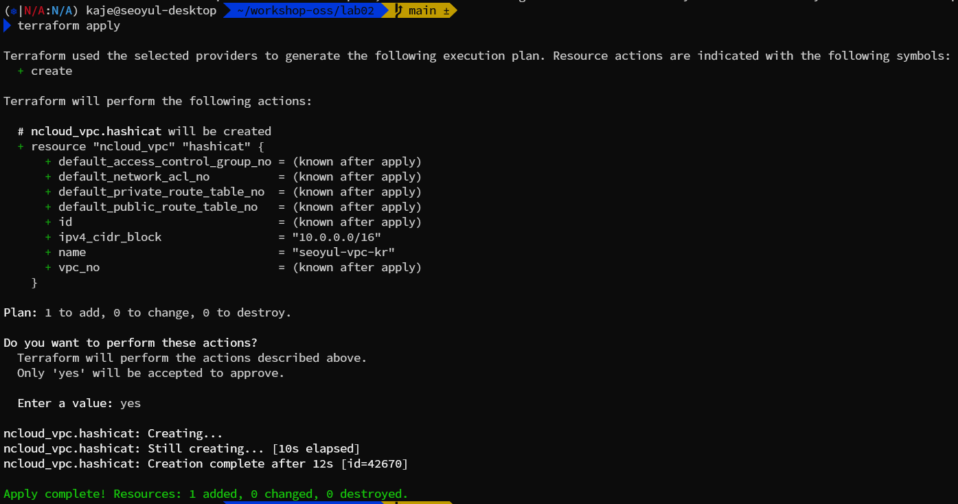 두 결과를 비교해보면 같은 값임을 확인할 수 있다. 특히 중요한 내용으로 네이버 클라우드 플랫폼 프로바이더는 리소스의 ID를 바탕으로 의존관계 등을 파악하고 동작하며 각종 CRUD에 사용된다는 점을 알아둬야 한다.