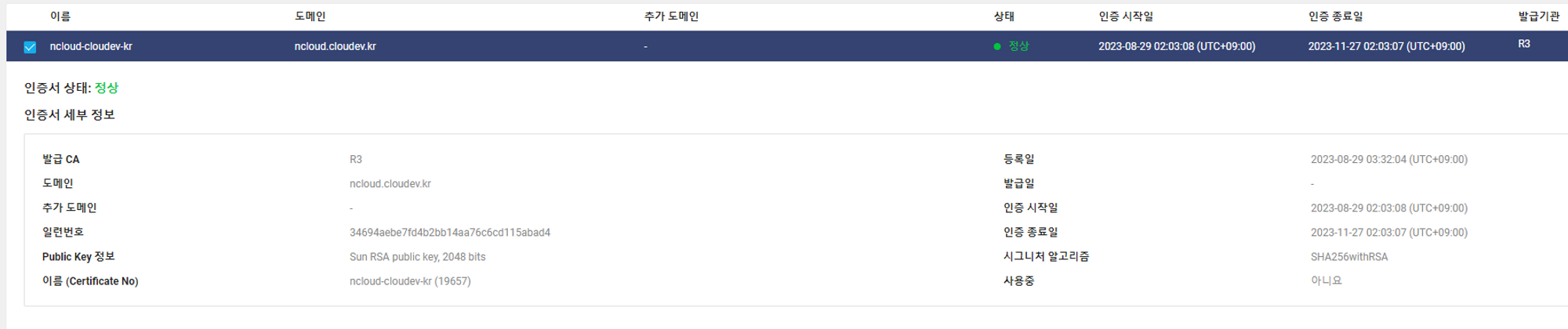 인증서가 잘 등록되면, 다음과 같은 화면을 확인할 수 있다.
